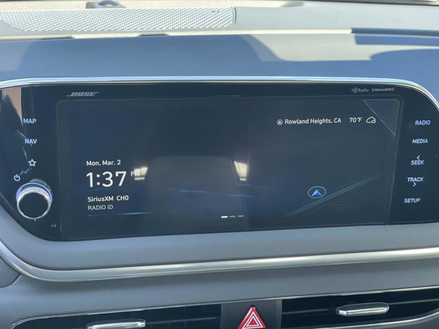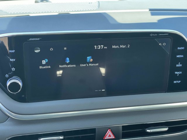 - Radio: AM/FM/MP3/HD/SiriusXM Display Audio w/Nav -inc: 10.25 color touchscreen Bose premium audio w/12 speakers (1 center channel 2 dash 2 front tweeters 4 door mounted 2 rear mounted speakers plus 1 rear mounted subwoofer) dynamic voice recognition integrated Bluetooth Blue Link connected car system Apple CarPlay Android Auto USB diversity antenna for navigation and HERE HD traffic