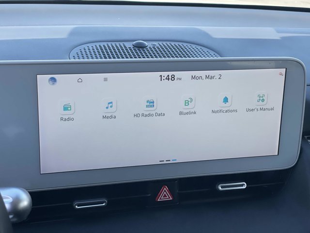 - Radio: AM/FM/SiriusXM/HD Display Audio System -inc: 12.3 color touchscreen navigation w/EV technology 6 speakers Android Auto and Apple CarPlay BlueLink connected car system vehicle Wi-Fi hotspot Bluetooth w/phonebook transfer; Hyundai Pay; dynamic voice recognition and USB input